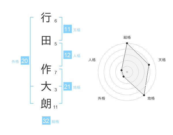 行田 作大朗さんの総格は32画の5点!