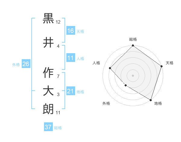 黒井 作大朗さんの地格は21画の5点!