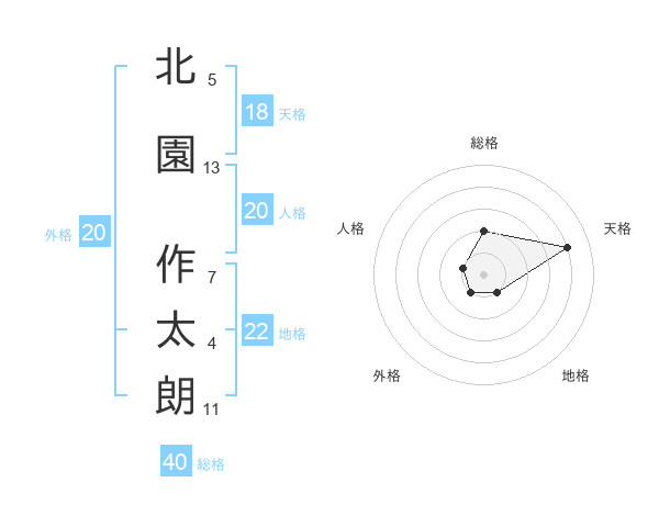 北園 作太朗さんの地格は22画の1点!
