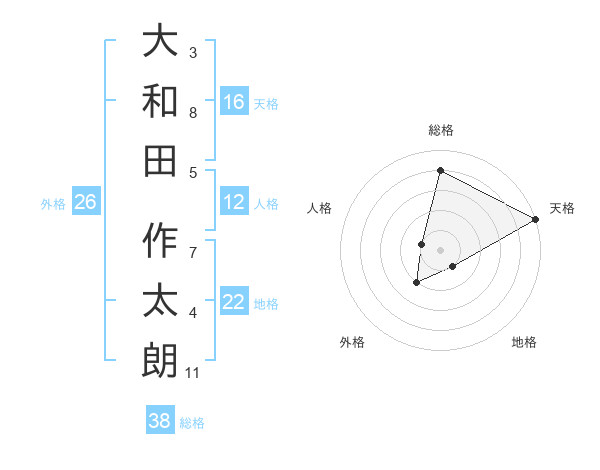 大和田 作太朗さんの総格は38画の4点!