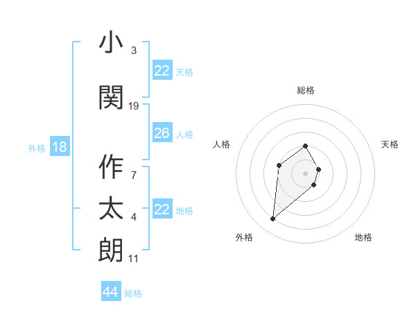小関 作太朗さんを姓名の画数から五運を鑑定