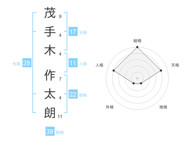 茂手木 作太朗さんを姓名の画数から五運を鑑定