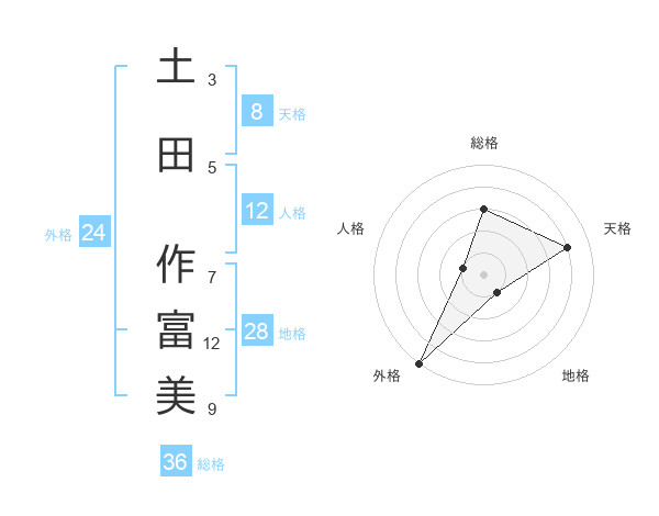 占い結果は姓名判断である以上、良い場合も悪い場合もありますが、決してお名前を誹謗中傷するものでなく、画数の自動計算によって得られたものです。また、本サイトの検索によって得られた鑑定結果で、第三者を誹謗中傷したり名誉を棄損するような行為を禁じます。
