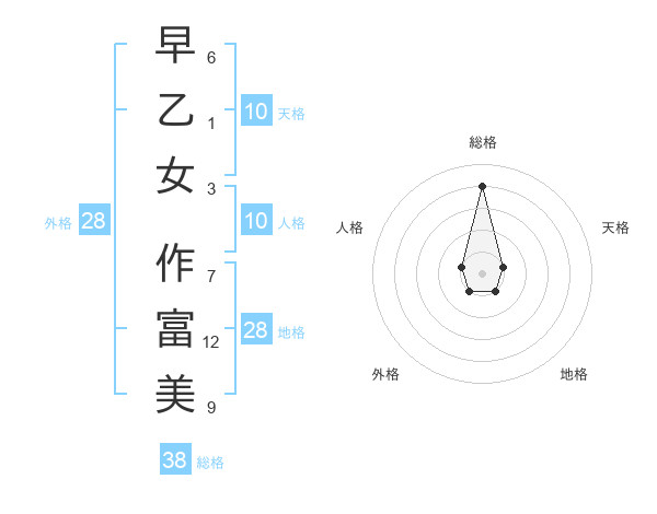 早乙女 作富美さんの総格は38画の4点!