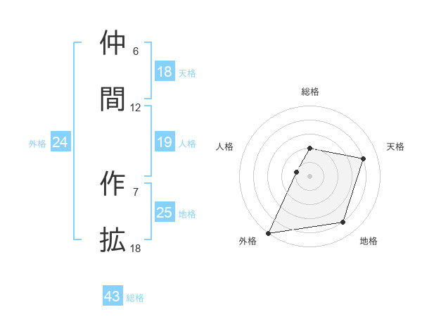仲間 作拡さんを姓名の画数から五運を鑑定