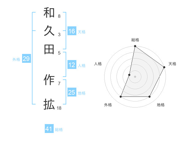 和久田 作拡さんを姓名の画数から五運を鑑定