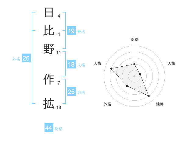 日比野 作拡さんを姓名の画数から五運を鑑定