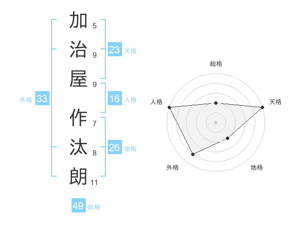 加治屋 作汰朗さんを姓名の画数から五運を鑑定