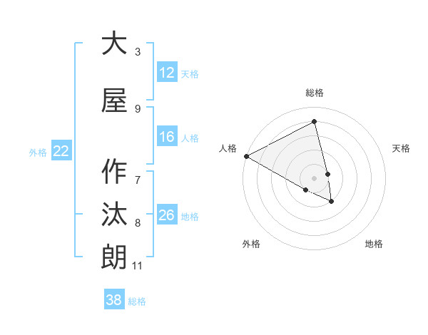 大屋 作汰朗さんの総格は38画の4点!
