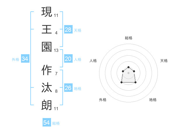 現王園 作汰朗さんを姓名の画数から五運を鑑定