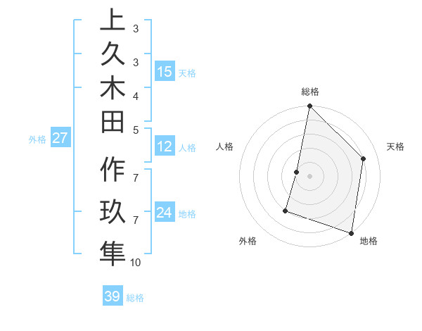 上久木田 作玖隼さんを姓名の画数から五運を鑑定