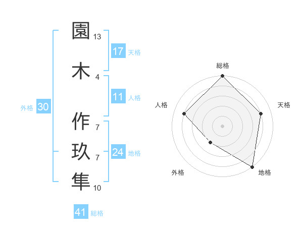 園木 作玖隼さんの総格は41画の5点!
