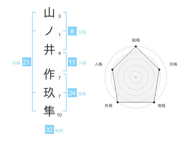 山ノ井 作玖隼さんを姓名の画数から五運を鑑定