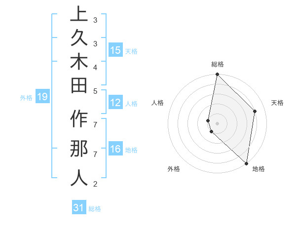 上久木田 作那人さんを姓名の画数から五運を鑑定