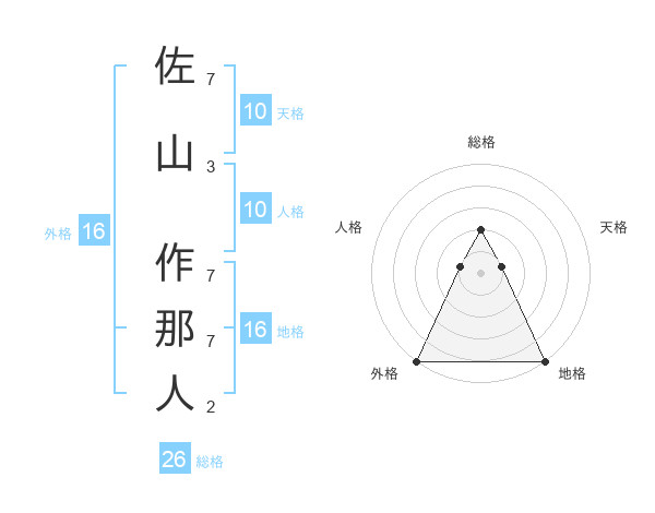 佐山 作那人さんを姓名の画数から五運を鑑定