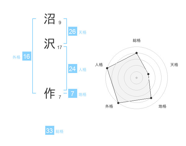 沼沢 作さんの総格は33画の4点!