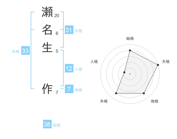 瀬名生 作さんを姓名の画数から五運を鑑定