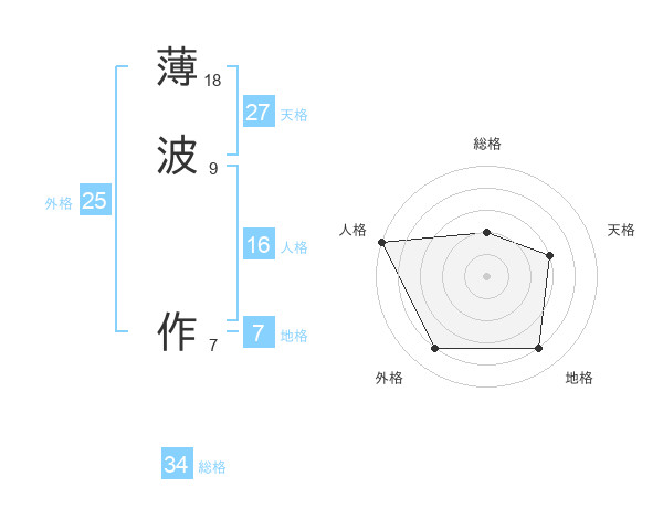 薄波 作さんの総格は34画の2点!