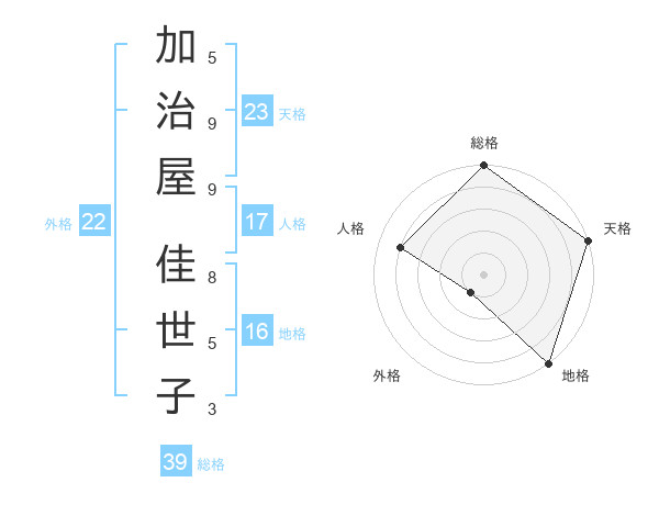 加治屋 佳世子さんを姓名の画数から五運を鑑定