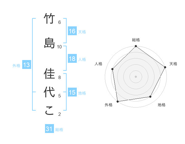 竹島 佳代こさんを姓名の画数から五運を鑑定