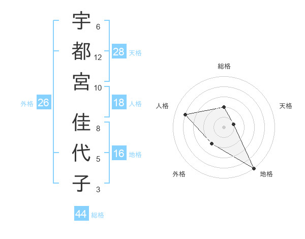 宇都宮 佳代子さんを姓名の画数から五運を鑑定