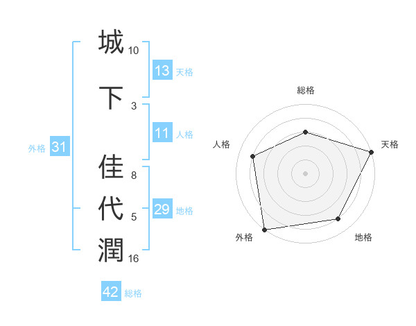 城下 佳代潤さんの天格は13画の5点!