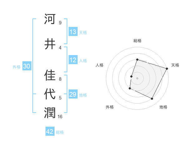 河井 佳代潤さんを姓名の画数から五運を鑑定