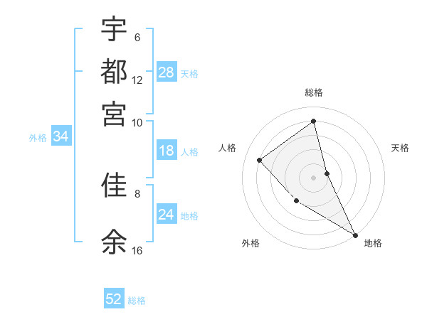 宇都宮 佳余さんを姓名の画数から五運を鑑定