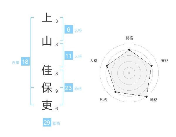 上山 佳保吏さんの総格は29画の4点!