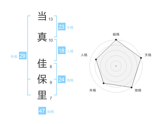 当真 佳保里さんを姓名の画数から五運を鑑定