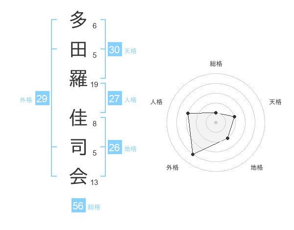 多田羅 佳司会さんを姓名の画数から五運を鑑定