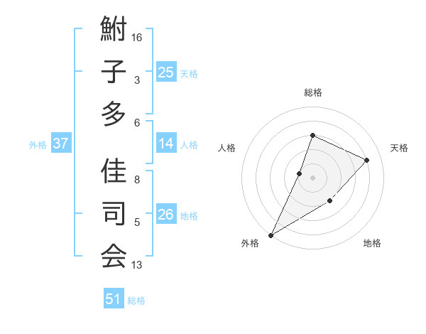 鮒子多 佳司会さんを姓名の画数から五運を鑑定