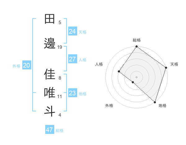 田邊 佳唯斗さんを姓名の画数から五運を鑑定
