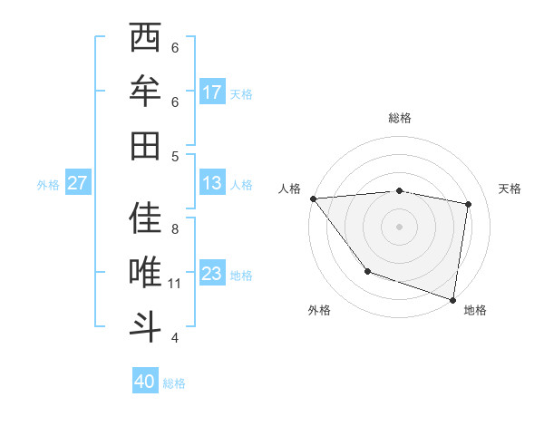 西牟田 佳唯斗さんを姓名の画数から五運を鑑定