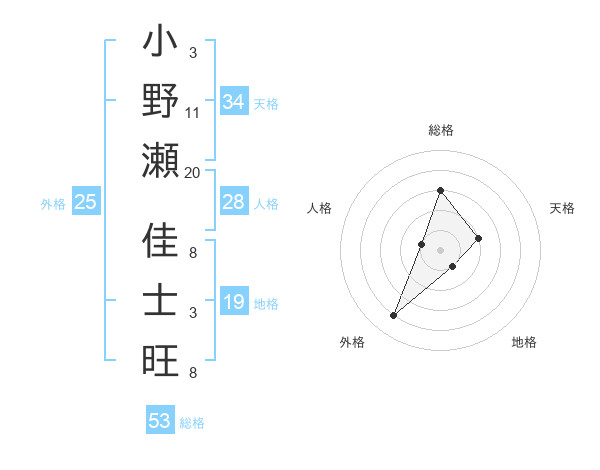 小野瀬 佳士旺さんを姓名の画数から五運を鑑定