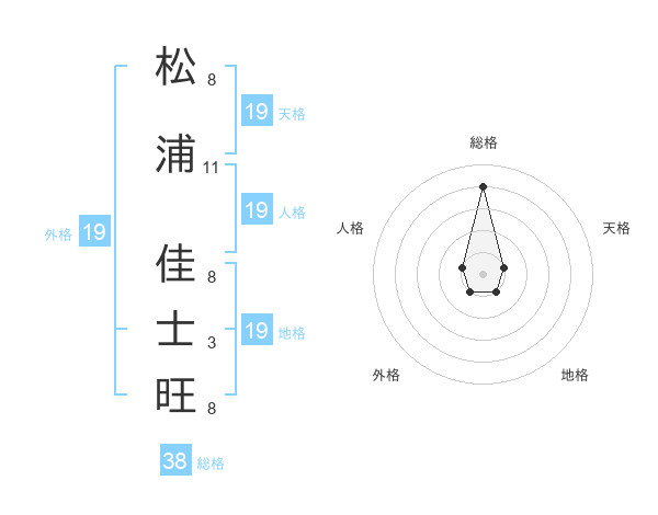 松浦 佳士旺さんの総格は38画の4点!