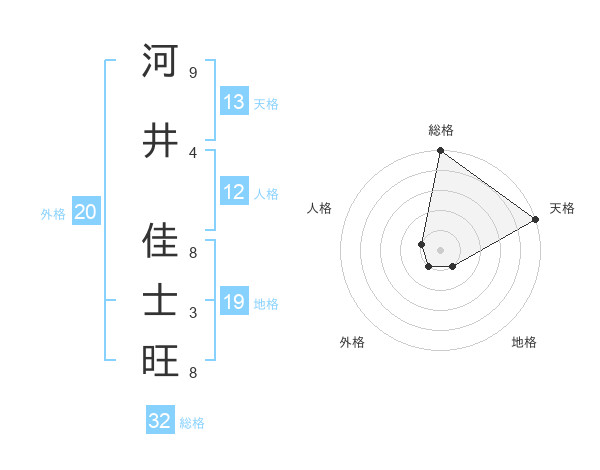 河井 佳士旺さんを姓名の画数から五運を鑑定