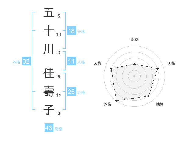五十川 佳壽子さんを姓名の画数から五運を鑑定
