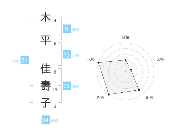 木平 佳壽子さんを姓名の画数から五運を鑑定