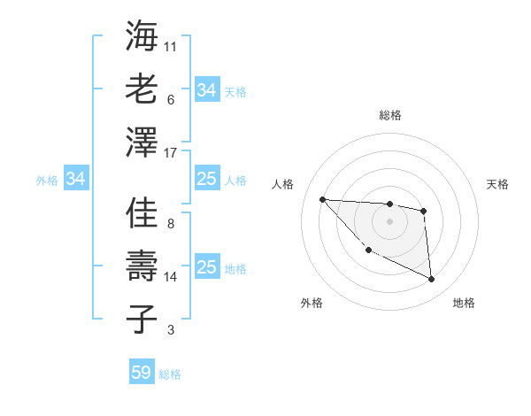 海老澤 佳壽子さんの外格は34画の2点!