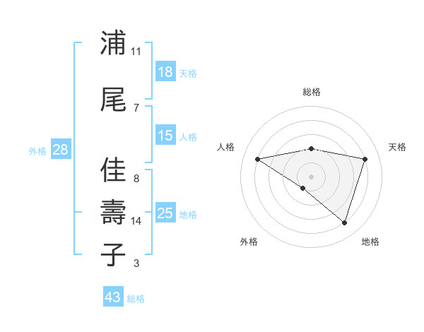 浦尾 佳壽子さんを姓名の画数から五運を鑑定