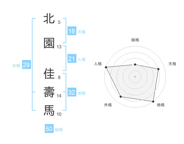 北園 佳壽馬さんを姓名の画数から五運を鑑定