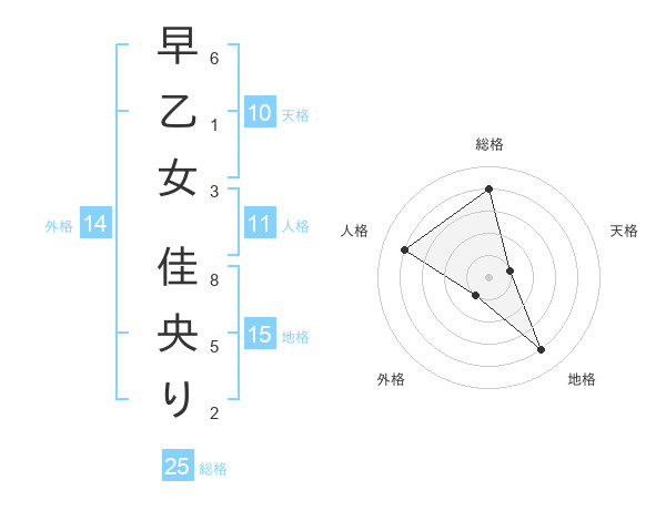 早乙女 佳央りさんを姓名の画数から五運を鑑定
