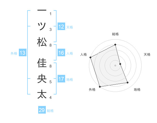 一ツ松 佳央太さんを姓名の画数から五運を鑑定