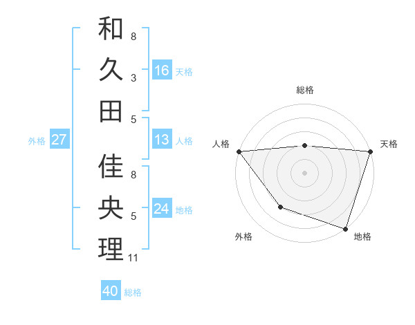 和久田 佳央理さんを姓名の画数から五運を鑑定