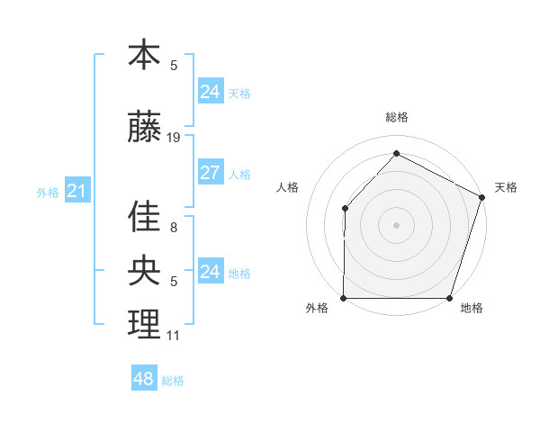 本藤 佳央理さんを姓名の画数から五運を鑑定