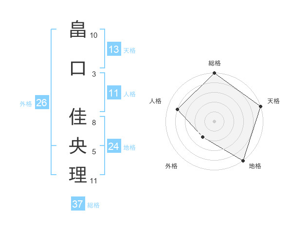 畠口 佳央理さんを姓名の画数から五運を鑑定
