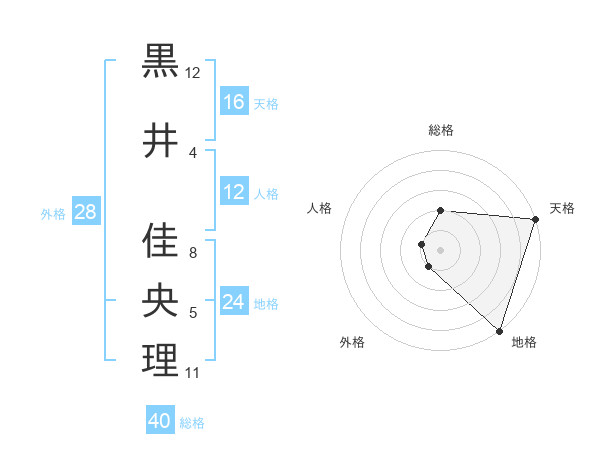黒井 佳央理さんの天格は16画の5点!