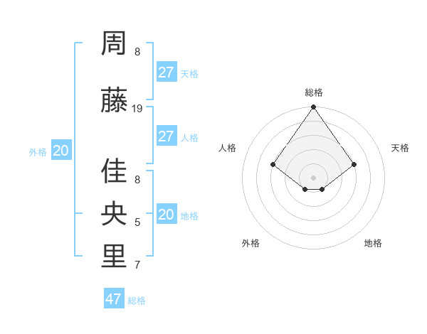周藤 佳央里さんを姓名の画数から五運を鑑定