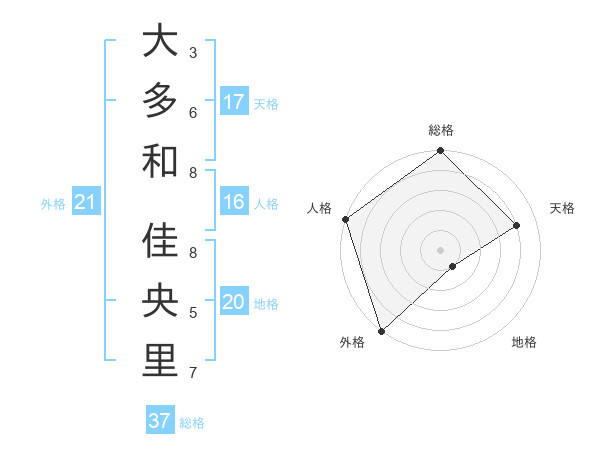 大多和 佳央里さんを姓名の画数から五運を鑑定